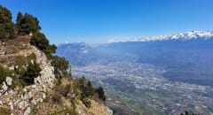De là-haut, cette avancée permet de faire un pas dans le vide, avec une vue exceptionnelle sur Belledonne, la vallée grenobloise et s'il fait grand beau, le mont Blanc !
