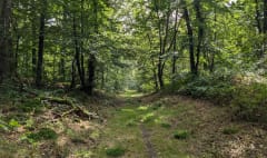 Route du bornage barrée et envahie de ronce après la maison forestière