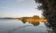 Départ aux aurores. Belle lumière matinale ! Les oiseaux sont partout et tranquilles. Suggestion : Il existe une version en boucle permettant de traverser Mériadec et sa chapelle, le Dolmen de Toulvern, son lac + observatoire ornithologique.