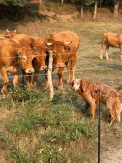 Balade sympathique dommage qu’il y ai un endroit où c est que de la route. Les petits points d’eau sont pratiques pour les chiens