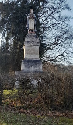 Outre la statue du roi, la balade nous promène entre statue du saint roi, superbe église du XIIe, lavoir d'époque et futaies splendides.