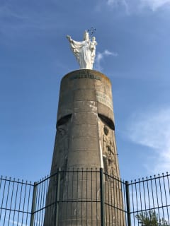 Surplombant ces hauteurs, la statue de Notre-Dame de la Falaise.
