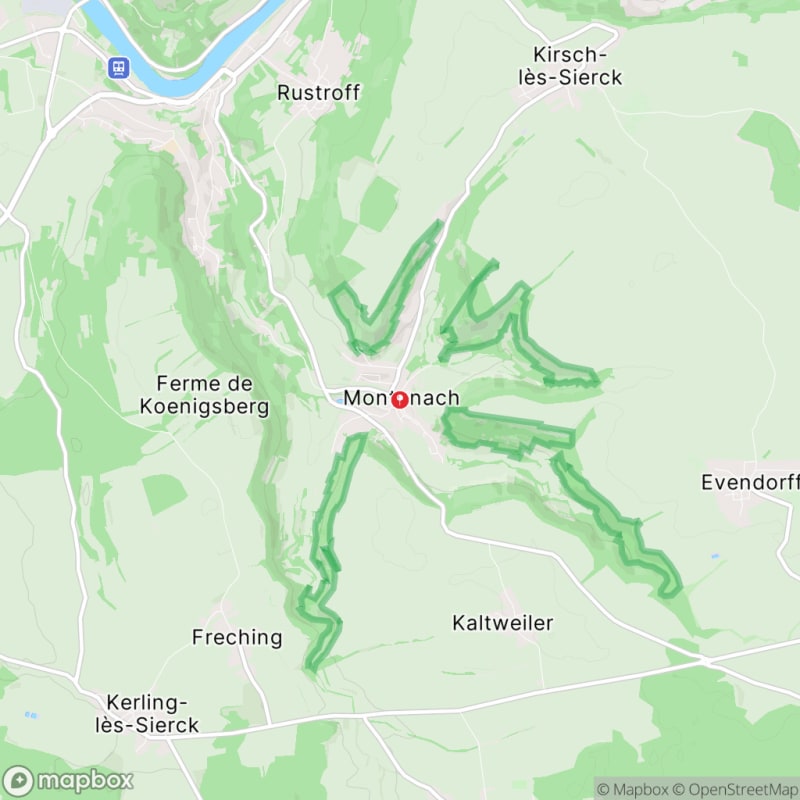 Vous cherchez les meilleures randonnées à Montenach ? Notre carte vous présente les itinéraires préférés de notre communauté de randonneurs. Avis, photos, témoignages... trouvez votre prochaine randonnée autour de Montenach grâce à cette sélection de parcours. Que vous soyez à la recherche d’une rando sportive sur les sentiers de la région Grand Est, d’une escapade dépaysante au grand air, d’une rencontre avec l’architecture et le patrimoine local, ou tout simplement d’une balade autour de Montenach en famille, on a ce qu’il vous faut !