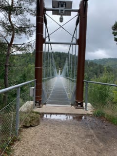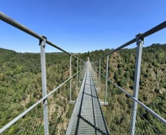 La passerelle des gorges du Lignon, c’est la randonnée frisson à faire en Haute-Loire. Aussi appelé passerelle himalayenne de Grazac, il n’y a pas photo, ce pont suspendu ouvert en 2022 impressionne. De par sa hauteur tout d’abord, qui peut donner le vertige : la rivière du Lignon du Velay s’écoule 78 mètres en contrebas. Mais aussi par sa longueur : avec 268 mètres de long, il s’agit de la passerelle la plus longue de France. Alors en rando au départ de Grazac ou de Saint-Maurice-de-Lignon, venez découvrir avec nous les sentiers qui mènent à la passerelle des gorges du Lignon, et vous faire votre avis sur cette pépite de la région Auvergne-Rhône-Alpes.