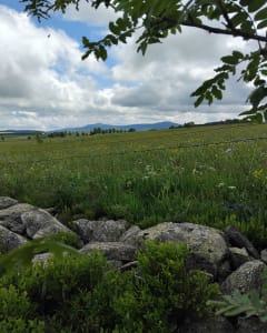 Au pied du Meygal, cette charmante randonnée parcourt hameaux aux toits de lauzes et campagnes autour du lac bleu qui est franchement turquoise !