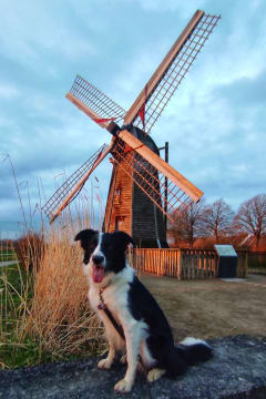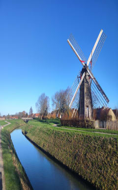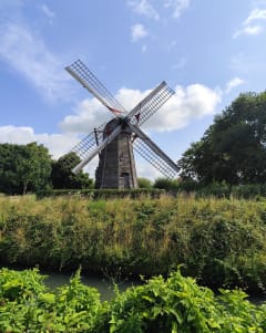 "Balade de 2,9 km à travers les marais, avec une vue magnifique sur un moulin typique sous un ciel bleu éclatant."