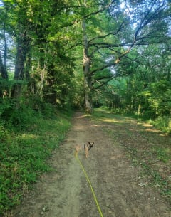 Une promenade facile, très belle balade , rivière, forêt....avec des chiens le top.