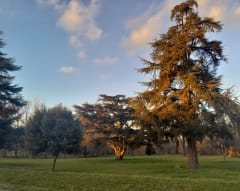 Parking aux abords d'un grand parc. Chemins bien balisés et facile d'accès. Pas de point d'eau à proximité. Très beaux paysages agricoles. Peu d'ombre.