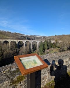 Le départ se fait place Adeline à la belle fontaine aux têtes de lion. Il faut descendre dans le bourg, visiter l'église et quitter le centre vers le jardin et le panorama sur les deux viaducs. On se dirige vers le site Gallo-romain, attention, un peu de dénivelé sur cette portion. On redescend ensuite pour passer sous les piliers du Viaduc et retrouver le bourg.