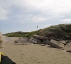 On part du parking de la plage du mont St Frieux pour emprunter un sentier qui nous emmène dans les dunes entourés d'oyats et d'epineux Certains passages sont envahis par l'eau si le temps a été à la pluie précédemment donc prévoir de bonnes chaussures mais pas de souci si le temps est sec Et retour par la plage Superbe par temps ensoleillé