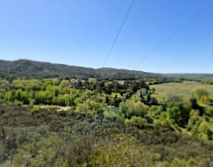 Au retour et après avoir traversé des beaux champs d'oliviers, le chemin vient surplomber le Gardon et nous offre des vues sur le Château de Saint-Privat et ses jardins.