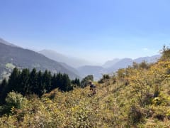 Début très agréable, montée sous les arbres La dernière moitié du parcours oblige à marcher sur la route (nous avons coupé à travers champs) puis sentier caillouteux sans grand intérêt jusqu’au village