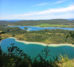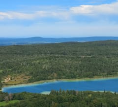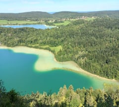 Entre base de loisirs et nature préservée, plages de sable fin et sentiers de randonnée balisés, le lac de Chalain réunit les amateurs de rando et de pédalo autour de ses eaux incroyablement vertes, résultat d’un processus géologique enclenché il y a plusieurs milliers d'années. Au pied du premier plateau du massif jurassien, ce lac d’origine glaciaire étale ses 232 hectares de lagon turquoise entre Fontenu, Marigny et Doucier, falaises calcaires et forêt de résineux. La beauté du site naturel, le faible dénivelé et la possibilité de se baigner en font une destination rando familiale parfaite.