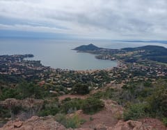 Très beaux points de vue sur la rade d'Agay dénivelé positif 200 m pour aller jusqu’à la table d'orientation et descente par une piste caillouteuse jusqu’au bord de mer.