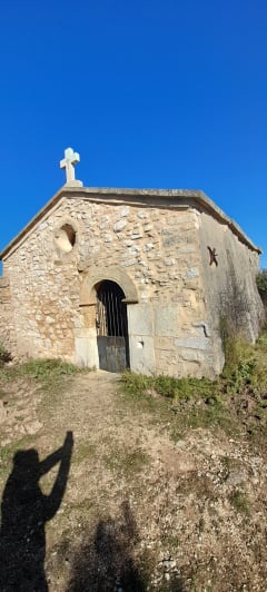 départ parking des randonneurs, prendre la direction de la chapelle.il faut suivre les dfci avec un paysage de garrigue et ses fleurs (iris nain,laurier thym etc...)pour finir le long des vignes le village est très beau et mérite que l'on si attarde.