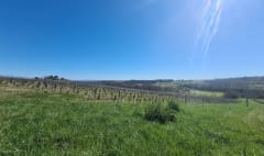Début de la rando dans les vignes, puis environ 300m sur une route passante, et le reste de la balade sur des chemins bitumés. dommage... balade bien sympa tout de même