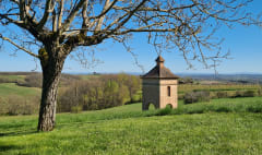 Points d'intérêt : panorama, bois, collines avec vues sur les Pyrénées et Gaillac, patrimoine. Accessibilité : prendre chaussures pour terrain, bœuf, tout public, chien, adapté aux enfants. Commodités : parking.