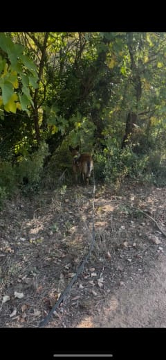 Très belle balade pour nos toutous ! Démarrage assez rude avec un beau dénivelé mais tous a fait faisable ! (Peut être compliqué pour des enfants en bas âges ?) Très sec encore à cette période. Prévoir de l’eau :) Magnifique paysage, être attentif en période de chasse avec nos chiens car on doit probablement contourner une réserve, coup de feu et chiens entendus assez proche pendant la balade.