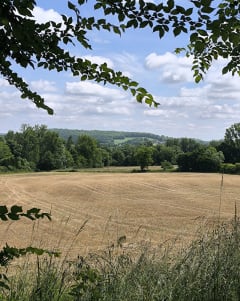 Très jolie balade avec notre chien, bcp de chemins boisés et à travers champs