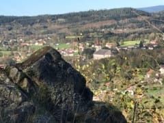 On commence par suivre la route, nous attendons le second panneau "Sentier de la Roche" pour la quitter. Arrivée à la roche du sphinx, vous pouvez profiter du point de vue. Puis reprendre le sentier afin de descendre. Vous arriverez un peu plus bas sur la route du départ. Bonne balade.