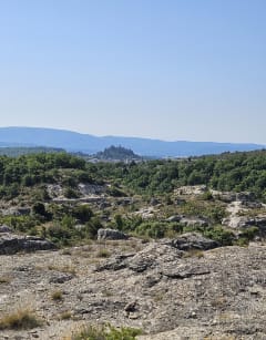 Randonnée facile mais à faire tôt le matin en été car peu d’ombre donc chaud. Point de vue sur Forcalquier, une borie et curiosité géologique des Mourres, énormes rochers en forme de champignons de plusieurs mètres de hauteurs.