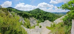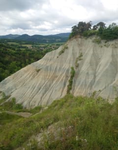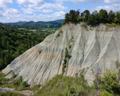 À la sortie du village, on emprunte d'abord l'ancienne voie ferrée de la Galoche puis l'on revient vers le hameau de Chastel où l'on va surplomber le ravin. Ce canyon d'argile multicolore rappelle les badlands américains, pour une ambiance très "western".
