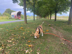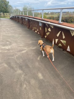 Balade très sympathique, accessible avec chiens. Il y a petit chemin d’herbe longeant la piste cyclable. Nous avons croisé quelques vélos et joggeurs. Grand parking pour se garer.