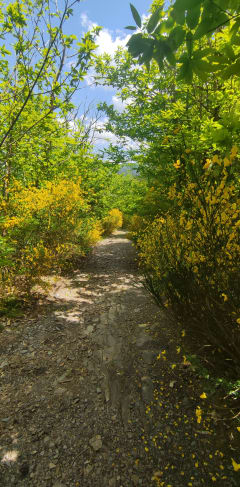 Belle randonnée, au départ montée raide jusqu'au sommet, puis descente de l'autre côté avec paysage magnifique ,chemin sous les châtaigniers..., entre les genêts, puis arrivé le long de la rivière . une belle journée avec un temps magnifique .