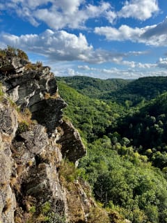 La roche d’Oëtre est un incontournable de la randonnée dans l’Orne. À Saint-Philibert-sur-Orne, au milieu d’un paysage typique de Normandie, fait de bocages et de collines verdoyantes, cette barre rocheuse détonne. Culminant à 118 mètres de haut, ce belvédère sur les luxuriantes gorges de la Rouvre attire les amateurs de nature : accrobranche, vélo, trail et bien sûr, randonnée pédestre ! De la petite balade facile en famille à l’itinérance avec le GR ® de Pays "Tour de la Suisse Normande", il y a des activités, et surtout des sentiers pour tous les niveaux. Suivez-nous en randonnée à la roche d'Oëtre ! (Et bonne nouvelle, avec notre app, plus besoin de carte !)