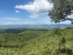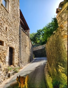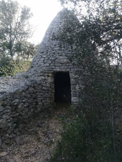 Très belle balade mi ombragée. Visite de la petite capitelle puis accés à la grotte des camisards ( beau dénivelé) la suite se pratique sur une DFCI , puis continue vers le village d'Aubarine avec vu sur le château Attention petit partie à longer sur la route. Point d'eau pour les toutous à environ 2 km avant d'arriver au village de Rochegude c'était très sympa