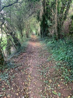 Ballade sympa mais plusieurs fois nous sommes obligés de traverser a travers champs en ouvrant et fermant des portillons prévu à cet effet au risque comme ça m'est arrivé de se retrouver nez à nez avec des vaches et d'ailleurs un portillon a été condamné sûrement par le propriétaire du champ obligeant a faire un détour sinon jolie ballade.
