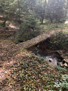 Sur la première partie de bois, il y a une partie où plus d’indication Copler + l’application nous indique que l’on n’est pas sur le bon chemin ! Feuilles, cailloux, sol humide, prévoir bonnes chaussures ! Jolis sous-bois, bons dénivelés, jolies vues sur la campagne vallonnée. Il faut être bons marcheurs.
