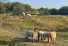 Comme il faisait beaucoup de vent j'ai préféré prendre le sentier qui s'enfonce dans les dunes (suivre balisage d'une dewulf) qui permet d'être plus dans la nature et de passer par l'ecopaturage où broutent librement les moutons. Je voulais y passer car c'est le printemps et les agneaux viennent de naître.