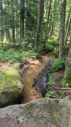 Un peu de route de campagne et des bois bien frais en été, quelques passages difficiles avec des cailloux ou personnellement, je préfère descendre du vélo, mais je ne suis pas du tout une pro donc pour un pro il y a moyen de se régaler dans ces descentes