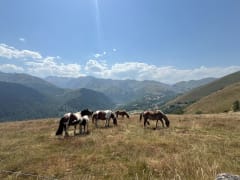 La montée se déroule sur une belle piste pastorale et offre une vue extraordinaire sur les plus hauts sommets du Luchonnais et des Pyrénées avec l’Aneto et le pic de Spijeoles!