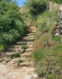 À mon avis le parking à la gare est très loin du vrai début de la randonnée et nous oblige à traverser un pont qui est fermé pour travaux et donc interdit même aux piétons. il faut donc passer outre et enjamber un parapet. cette partie au démarrage jusqu'à la première montée est sans intérêt pour un randonneur de niveau moyen. on passe le long de jardins communautaires et d'un camping de mobile home. une fois atteint les collines, là les paysages sont à couper le souffle.