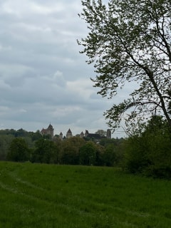 Belle ballade à travers bois et champs sans difficulté particulière et un beau château médiéval au centre du village pour couronner les kms parcourus.