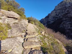 Magnifique randonnée (faites dans le sens indiqué), çà démarre fort par un bel escalier mais heureusement à l'ombre :) La 2ème partie de la montée est bien costaud mais faisable à son rythme :) Ayant un peu le vertige, je redoutais le passage en devers décrit dans les commentaires mais je n'ai même pas eu peur :)