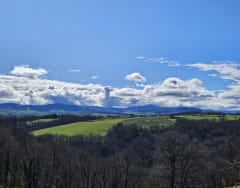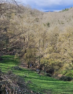 Jolie balade, une grande partie dans les champs et sur la route. Le passage de la rivière ést écroulé, il faut escalader. La remontée est très abrupte.