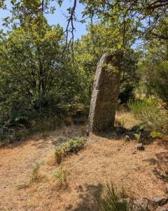 A l'ombre durant le parcours, appréciable quand il fait 36 C° Nous avons aimé la forêt de châtaigniers, les rochers qui donnent vraiment un côté "forêt enchantée", les menhirs comteibu évidemment à ce charme. Randonnée pas difficile, prévoir de bonne chaussures de randonnée car il y a des passages avec des cailloux peu stables. (Roulants)