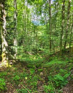 Traverser la route forestière et suivre le cercle rouge jusqu’au retour.
