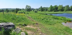 Balade faite sous le soleil après plusieurs jours de mauvais temps. Balade agréable avec des prairies en fleurs et quelques zones marécageuses le long du lac. Le parking prévu pour le circuit n'est pas accessible car la route est interdite à tous véhicules motorisés. Il existe un petit parking situé le long de la route départementale soit avant soit après le point de départ en fonction du côté d'où l'on vient.