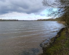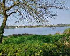 Sortie charmante en début de parcours , puis arrivent les ennuis : "chemin" à 50cm de l'eau complètement impraticable tellement inondé de plus de nombreux arbres à terre . j'ai fini par rejoindre la voie verte, bloquée par un enchaînement d'arbres et chemin invisible. depuis la voie verte j'ai découvert des panneaux signalant que le chemin évolue dans une forêt privée non autorisée. donc a proscrire 😡 il existe un autre tour du lac en partant de Loyat , très sympa celui la.