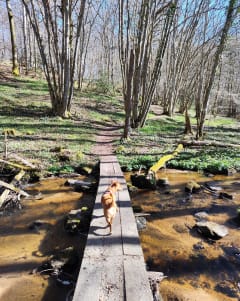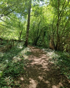 Petits chemins avec de temps en temps des planches de bois (grillagées pour ne pas glisser 👍) pour passer au dessus des mares et des ruisseaux 🤩