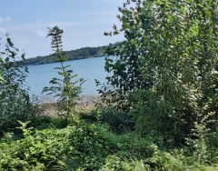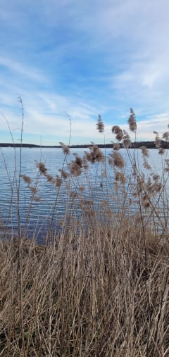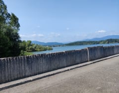 Belle petite promenade autour du lac où les chiens sont autorisés. une moitié à l'ombre une autre au soleil. Mais il faisait frais avec le vent et l'eau juste à côté.