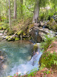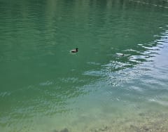 Pas à pas, on longe le lac turquoise, on découvre quelques beaux points de vue ainsi qu'une cascade et on découvre quelques animaux vivants sur les bords de l'eau.