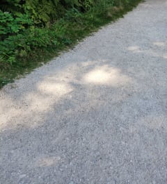 Promenade très facile dans un joli décor. Chemin très large où il est possible d'avoir la poussette, les tout petits à pied, à vélo ou autres draisiennes.