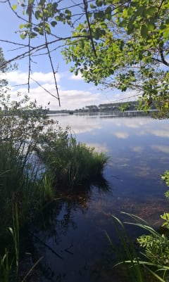 La vue sur l'etang est tres rare. Le parcour se divise en sable mou, sable dure, chemin de campagne champ et route. Parcours à faureavecdes efants jusqu'à la petit aire d'herbe, ensuite c'est moins praticable.