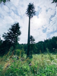 Magnifique épicéa remarquable d'une hauteur de 58 m en bordure du chemin.