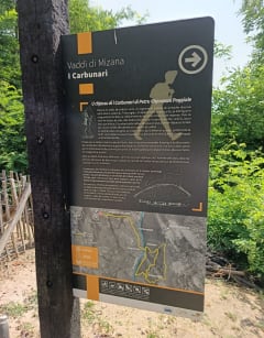 Belle balade bien balisée, mais avec un fort dénivelé en montée ou en descente. Les différentes étapes de la fabrication du charbon de bois sont expliquées et illustrées. Suivre les écussons ronds qui indiquent le sens du parcours. Le départ se fait du parking situé juste avant le restaurant. Descendre entre les habitations et rejoindre la route vers la droite, à suivre sur quelques dizaines de mètres avant d'obliquer à gauche sous le chalet et bien repérer les Écussons Ronds signalant cette randonnée. Le chemin descend, bien balisé, jusqu'au ruisseau. Atteindre le Ruisseau du Tinturaggio et le traverser. Le traverser par le pont de bois et prendre à droite dans la boucle. Le chemin monte et les différentes étapes de la fabrication du charbon de bois sont expliquées et illustrées. Parvenir à la dernière étape où l'on voit du charbon dans des sacs. Continuer le chemin jusqu'à retrouver le chemin de l'aller.